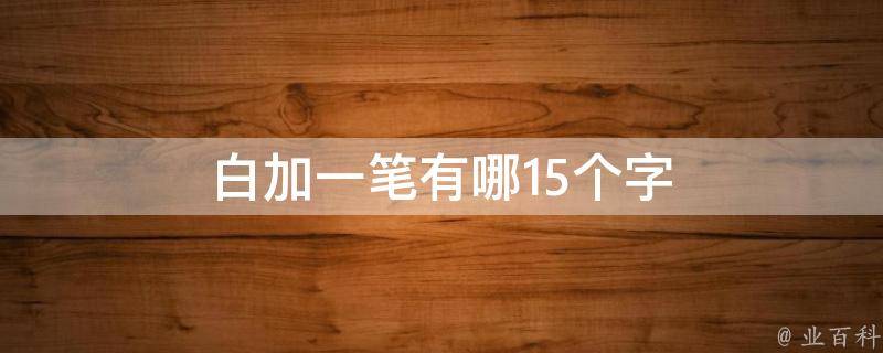 最佳答案白加一笔没有15个字,具体的字有:自、百、癿、甶。自表示第一人称,也有仍旧、依然、自然等意思,还表示时间或方位的由始,相当于从、由。百是数目字,十个十约数,表示很多或多种多样。癿字一般用于地名。甶字指的是鬼头。