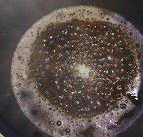 4.熬到开始出现小气泡时,立即加入冷水,注意盖锅盖。