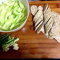 1、准备材料:黄瓜一根、葱末少许、姜丝适量、鱼肉卷一卷。