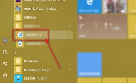 2、电脑开始界面,点击爱思助手软件将其打开。