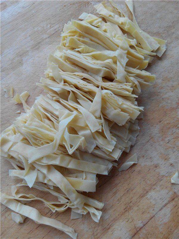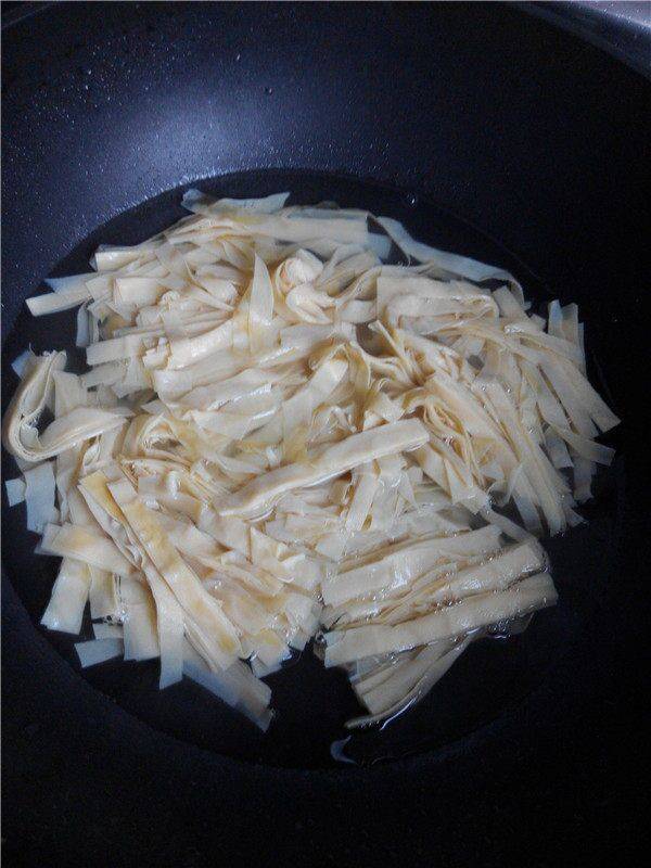 5、豆腐皮捞出用凉水过凉,沥干水。