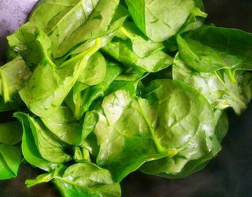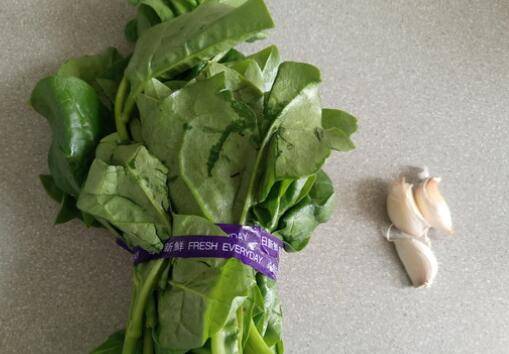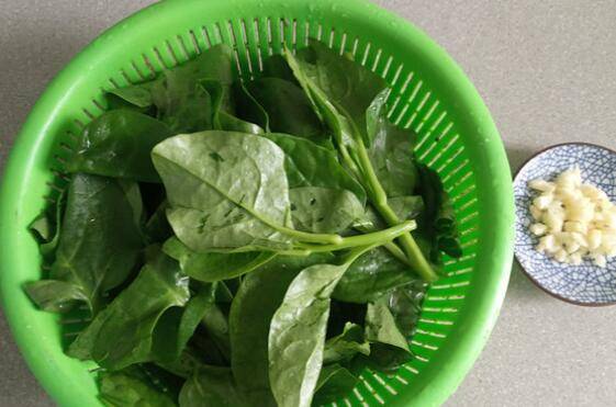 2、木耳菜去除老梗洗干净控去水分,蒜瓣去皮后切碎。