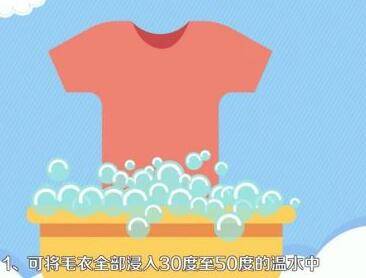 可在温水中滴进少量的家用阿摩尼亚水,将毛衣全部浸入。