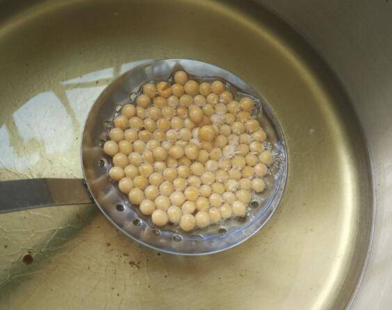 2、干黄豆先用热油炸熟备用。