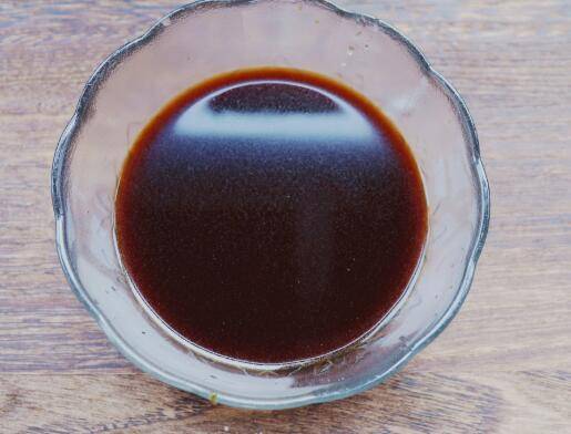 3、准备料汁:1勺半生抽、一勺醋、少许盐、一勺半糖,再倒入一些清水。