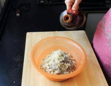 4、将剁好的白菜,豆腐丁,粉条加到一个盆内,加入姜末,葱末,香油,盐,猪油,生抽,十三香搅拌均匀。