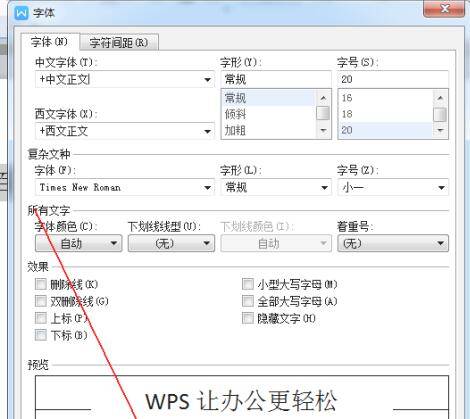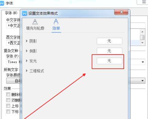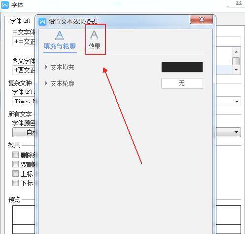 在字体窗口中单击字体选项卡下方的文本效果选项。
