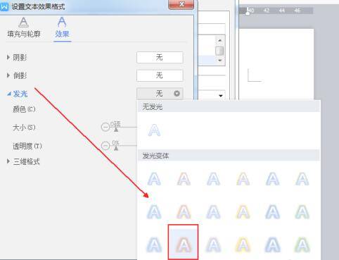 在弹出的菜单栏中选择自己喜欢的发光文字样式。