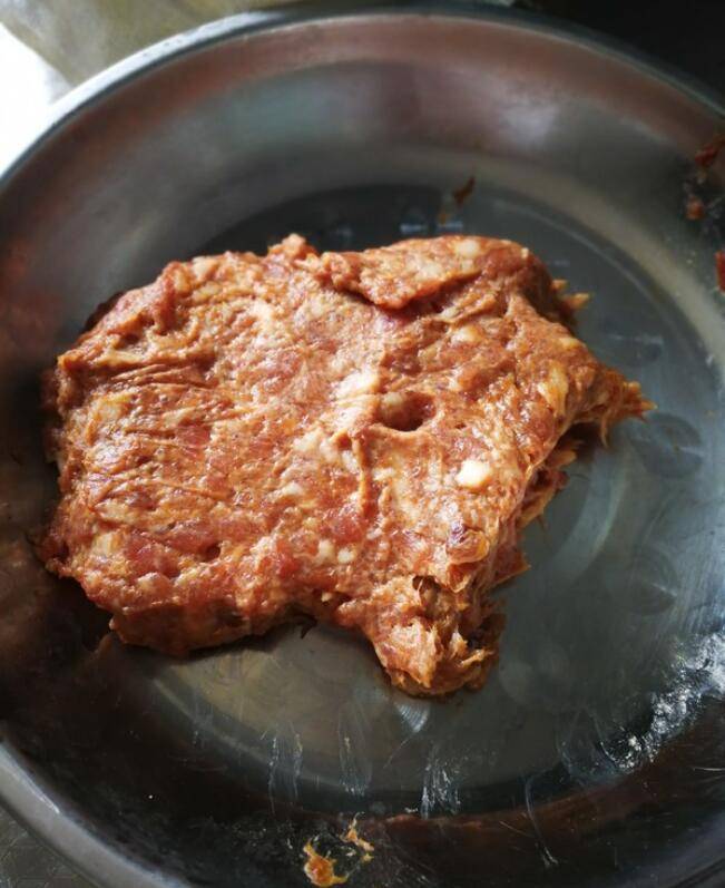 3、白萝卜攥出水分,放入肉馅里面。