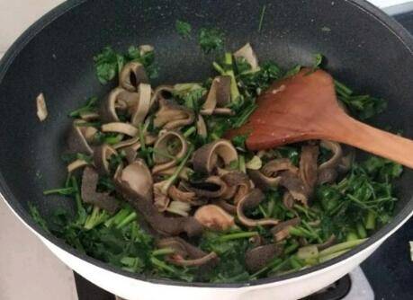 炒锅加入适量的花生油,放入葱花,炒香以后放入羊肚;