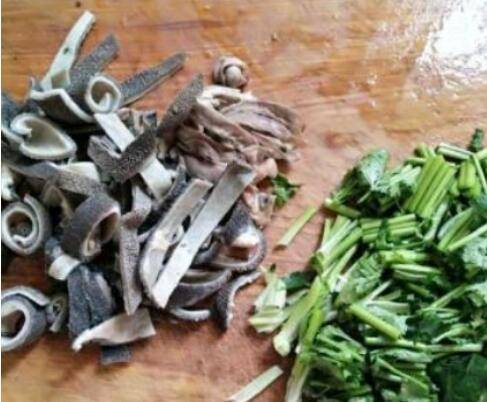 准备食材:羊肚2块、香菜适量、油适量、盐适量、葱1条、胡椒粉适量、酱油适量。