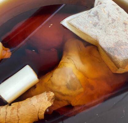 锅中放水,没过猪肚,加葱姜料酒老抽和卤料包,煮猪肚,视猪肚大小而言,煮约45-60分钟,知道用筷子戳猪肚可以一下戳过,且猪肚还有弹性为止。