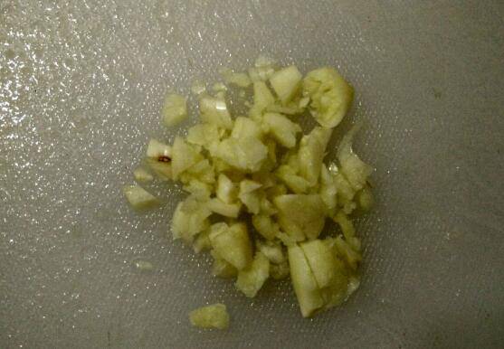 7、热锅倒入适量植物油烧八成热,放入大蒜爆香。