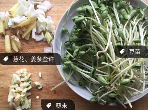 豆苗一把、葱一段、蒜三瓣、姜两小片。