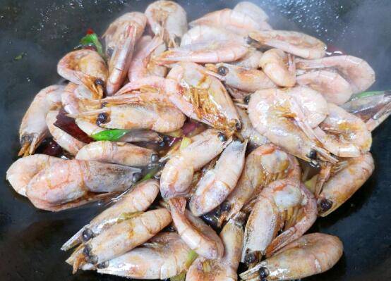 5、下入准备好的甜虾。
