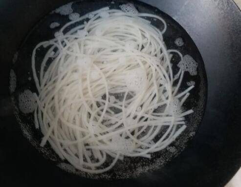 3、米线涨大一圈后就可以捞起。沥干水分待用。