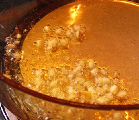 热锅凉油,将大蒜,先爆香。