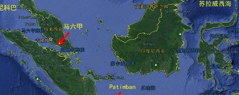 马来半岛与印度尼西亚。马六甲海峡,又译做麻六甲海峡:是位于马来半岛与印度尼西亚的苏门答腊岛之间的漫长海峡,由新加坡、马来西亚和印度尼西亚三国共同管辖。马六甲是马来西亚近代一个重要的国际贸易交通港埠,国际上习惯用它称呼该海峡。