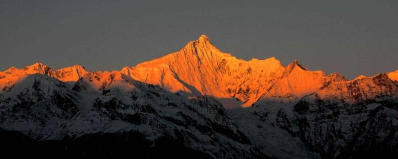 最高峰卡瓦格博峰海拔高度为6740米,是云南省最高的山峰,位于德钦县西南方10千米处,距中甸县城184千米。长约30公里,其中呈金字塔状的最高峰为卡瓦格博峰,海拔6740米,为突出于周围群山山顶面近千米的极高山,是云南省的最高峰。梅里雪山断裂活动强烈地势高耸,有13座海拔6000米以上高峰在卡瓦格博峰周边环绕,是青藏高原东南缘最高山。