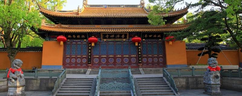 普陀山在浙江省舟山市。普陀山地形呈菱形状,是舟山群岛1390个岛屿中的一个小岛,形似苍龙卧海,面积12.52平方千米,与舟山群岛的沈家门隔海相望,素有海天佛国、南海圣境之称,南北长8.6千米,东西宽约3.5千米,岸线长30千米。中部佛顶山天灯台最高,海拔291.2米,向四面延伸,西为茶山,北为伏龙山,东为青鼓垒山,东南为锦屏山、莲台山、白华山,西南为梅岑山,主峰均在100至200米间,连绵起伏。