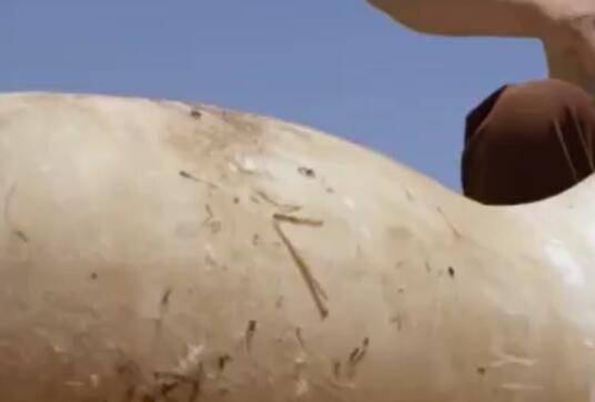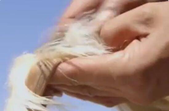 3、闻到臭味后,把羊皮取出来,然后把上面的羊皮剃光;