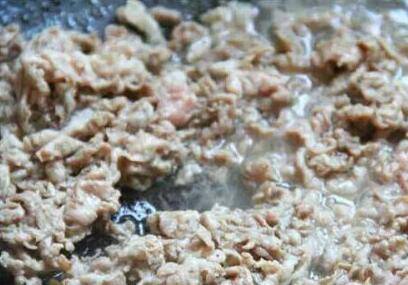 起油锅,放少许油,倒入羊羔肉片,大火快速拨散,羊羔肉变熟色,即可捞出沥干油备用。