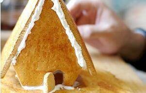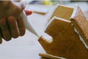 在蛋清加入白醋;糖粉分三次加入蛋清中,打发至硬性即成糖霜;然后一步步开始把小块块用糖霜粘贴起来;继续粘贴;继续粘上小装饰;将小糖果、小树、小栅栏装起来即可。