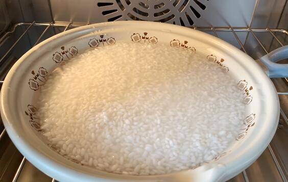 3、把大米和水倒入合适的容器,水要没过大米一厘米。