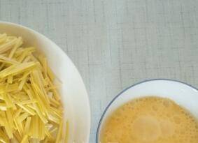 蒜黄切小段,鸡蛋打散。