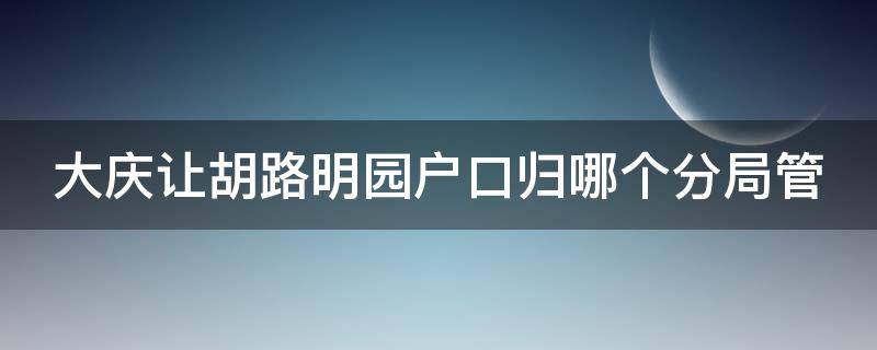 大庆让胡路明园户口归会战分局管。让胡路区,黑龙江省大庆市辖区,地处大庆市区西北部。总面积1394平方千米。让胡路区属温带季风气候,其特点是春秋季风交替、夏短温热多雨、冬长寒冷干燥、四季分明、绝对温差大。让胡路区下辖街道11个、镇1个。区人民政府驻龙岗街道。2021年,让胡路区总户数183238户。让胡路地区历史源远流长。据考古发现,新石器时代前期,6000年前的昂昂溪文化广布于松嫩平原,让胡路地区为昂昂溪文化类型所包含。1974年7月,大庆设置让胡路区。