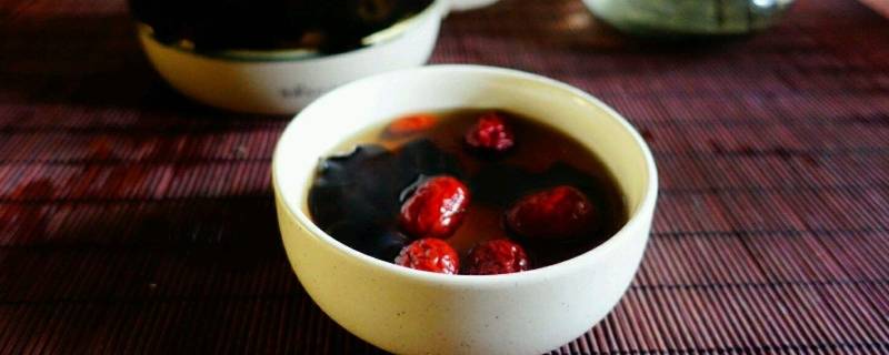 黑木耳可润肤,防止皮肤老化;大枣和中益气,健脾润肤,有助黑木耳祛除黑斑。木耳是木耳科真菌状如耳朵,系寄生于枯木上的一种菌类,富含铁、钙、磷和维生素B1等。枣能提高人体免疫力,并可抑制癌细胞:药理研究发现,红枣能促进白细胞的生成,降低血清胆固醇,提高血清白蛋白,保护肝脏。