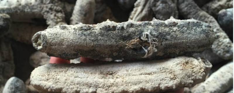 外形:颜色原为土黄色,干货偏白,形状是圆筒形,背部有许多疣状突起,腹面略平坦。