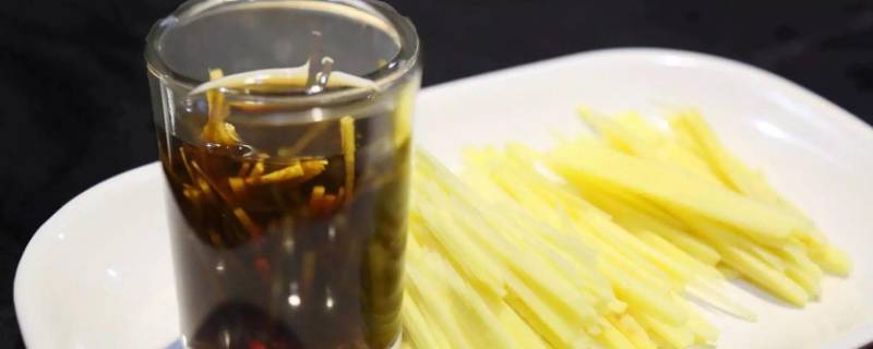 3、生姜洗净切丝。