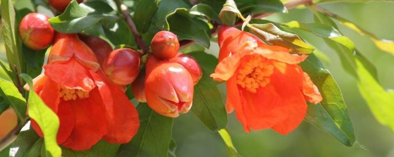 石榴花的花瓣形状和花朵大小石榴的花为两性花,因雌蕊发育程度不同,又分为完全花和不完全花。完全花呈葫芦状或筒状,俗称“大屁股果花”。不完全花的萼筒呈喇叭形,称“钟状花”或“尖屁股谎花”。石榴花的花朵大部分在10厘米左右,花瓣的瓣数为5-7瓣。