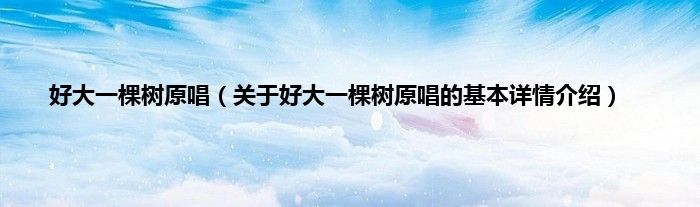 本文关于好大一棵树原唱的基本详情介绍就讲解完毕,希望对大家有所帮助。