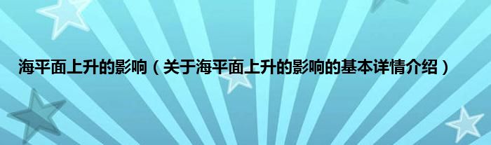 本文关于海平面上升的影响的基本详情介绍就讲解完毕,希望对大家有所帮助。