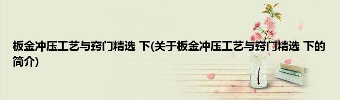 1、 《板金冲压工艺与窍门精选(下)》是机械工业出版社2003年出版的图书。