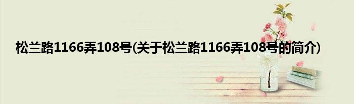 本文关于松兰路1166弄108号的简介就讲解完毕,希望对大家有所帮助。