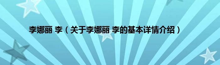本文关于李娜丽 李的基本详情介绍就讲解完毕,希望对大家有所帮助。