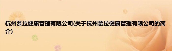 本文关于杭州慕拉健康管理有限公司的简介就讲解完毕,希望对大家有所帮助。