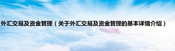 本文关于外汇交易及资金管理的基本详情介绍就讲解完毕,希望对大家有所帮助。