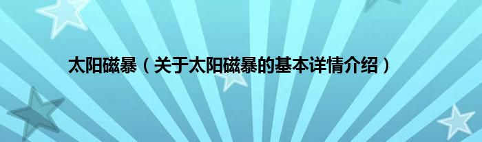 本文关于太阳磁暴的基本详情介绍就讲解完毕,希望对大家有所帮助。