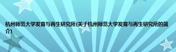 本文关于杭州师范大学发育与再生研究所的简介就讲解完毕,希望对大家有所帮助。