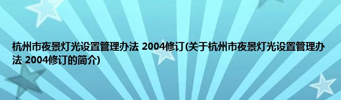 本文关于杭州市夜景灯光设置管理办法 2004修订的简介就讲解完毕,希望对大家有所帮助。