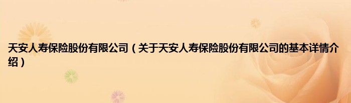 本文关于天安人寿保险股份有限公司的基本详情介绍就讲解完毕,希望对大家有所帮助。