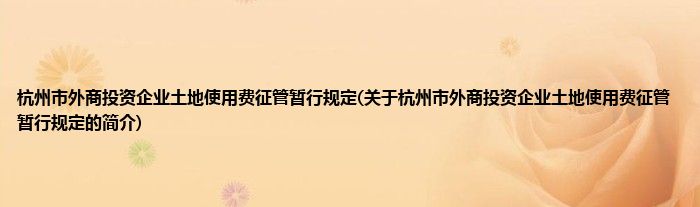 大家好,杭州市外商投资企业土地使用费征管暂行规定,关于杭州市外商投资企业土地使用费征管暂行规定的简介很多人还不知道,现在让我们一起来看看吧!