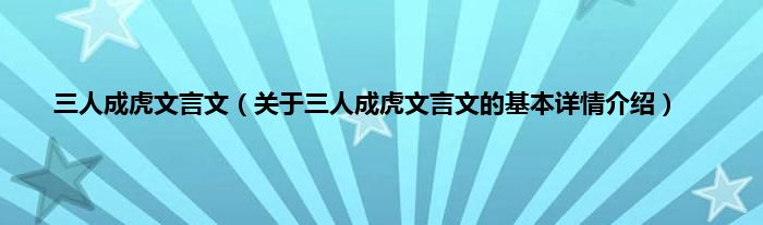 本文关于三人成虎文言文的基本详情介绍就讲解完毕,希望对大家有所帮助。