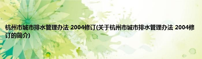 大家好,杭州市城市排水管理办法 2004修订,关于杭州市城市排水管理办法 2004修订的简介很多人还不知道,现在让我们一起来看看吧!