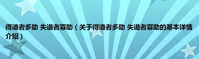 得道者多助 失道者寡助(关于得道者多助 失道者寡助的基本详情介绍)