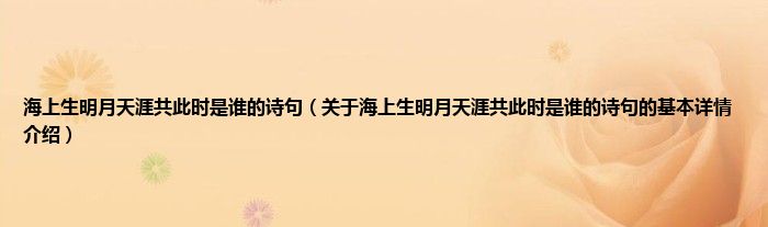 海上生明月天涯共此时是谁的诗句(关于海上生明月天涯共此时是谁的诗句的基本详情介绍...
